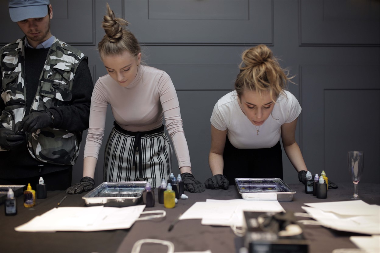 We use simple marbling ink and water techniques to allow people from all backgrounds to reconnect with their creativity and enjoy an experience of mindfulness and energised focus. Bringing our attention fully, and curiously to the present moment, we open a space for participants to get hands-on – and mucky! Together, in a supportive environment, we create artworks to take away and treasure.