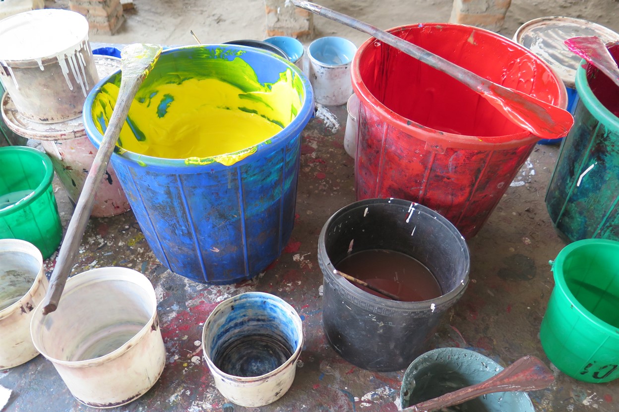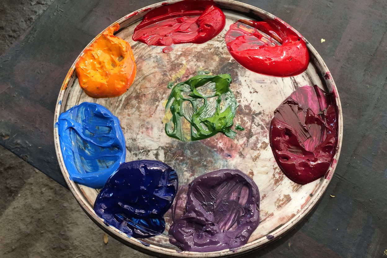 Mixing colours and testing new patterns in the open air