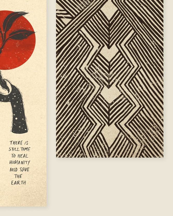 Choose Earth Collective is a collaboration between Indigenous and non-Indigenous creatives, including Samantha Roddick, Earthrise Studio, Mishka Westell, PATTERNITY and Sônia Guajajara and Célia Xakriabá.