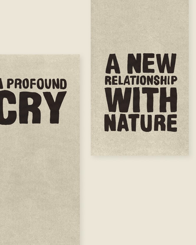 “Smikra Wahikwa” is the creative visualisation of a love letter to Earth written by Indigenous leaders Sônia Guajajara and Célia Xakriabá and co-created by Choose Earth Collective. The words and symbols printed across hanging banners in a “fabric forest” remind us that We Are Earth and act as a passionate call to Western cultures to “reforest our minds” and put nature at the centre of our thinking.