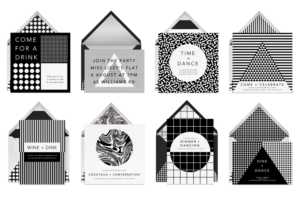 company Paperless Post to create a graphic collection of modern invitations to