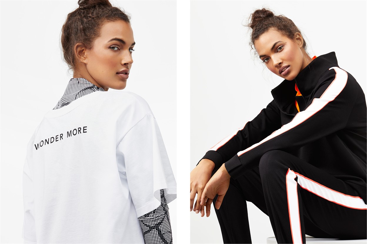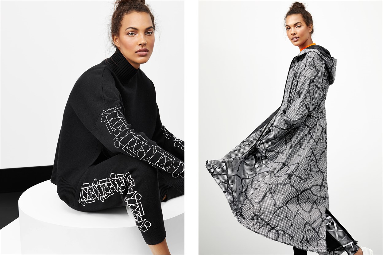 We took inspiration from both the inside and outside of our bodies, celebrating the emergent textures of the cracks beneath our feet to the bold graphic architecture high above our heads. Using sustainable materials like 100% recycled polyester and Better Cotton Initiative certified cotton, the pieces hope to create positive ripples out in the world.