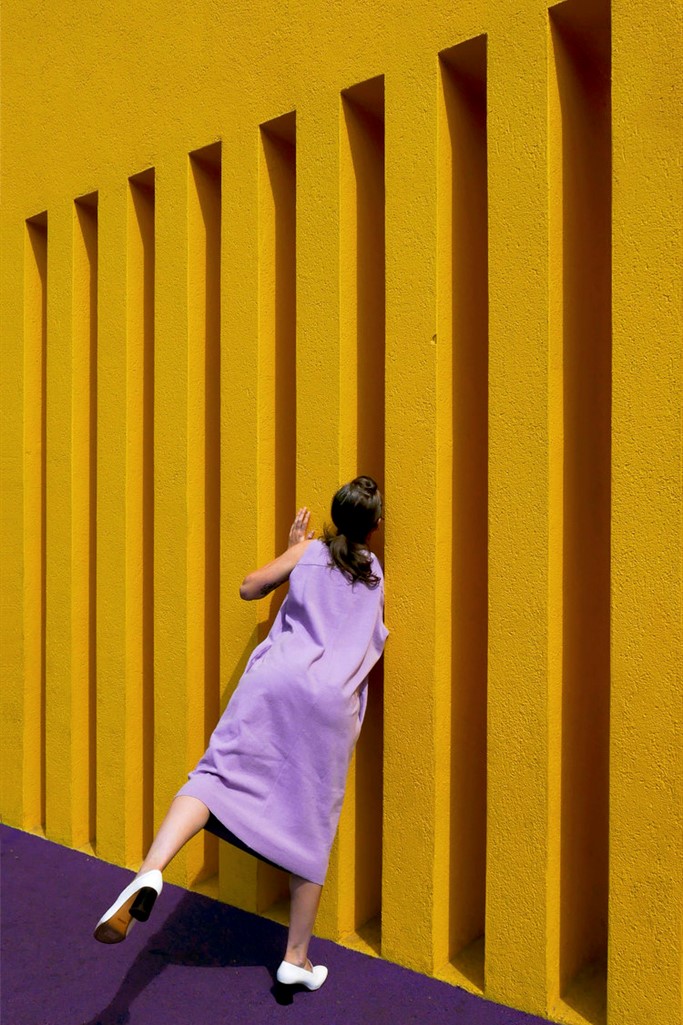 Tekla Evelina Severin created a series of photos with joyful colours and urban patterns. Shadows create bold shapes as part of look book story for Bright Volumes , in...
