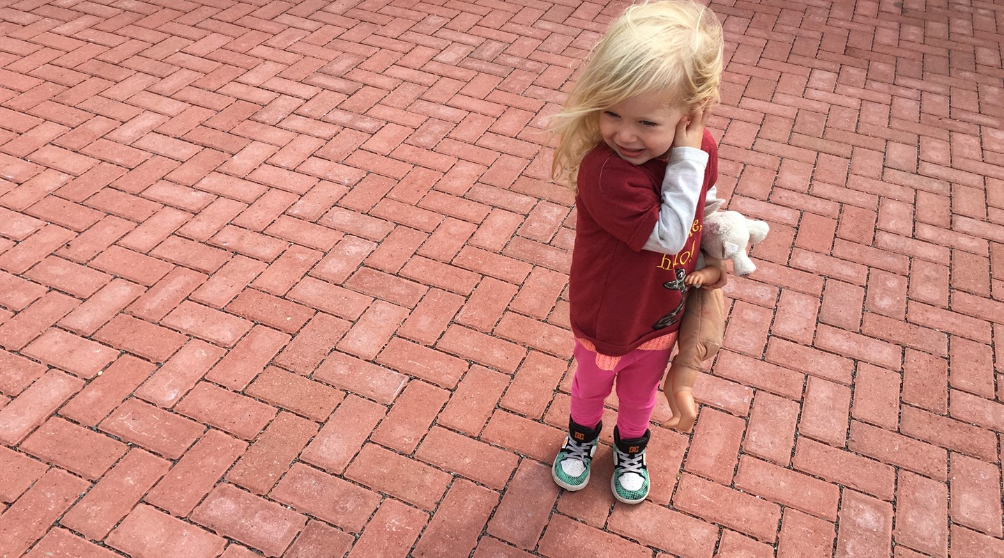 Anna's niece Willow was rather windswept in Bristol today, but perfectly matched the brick chevrons in her burgundy outfit!
