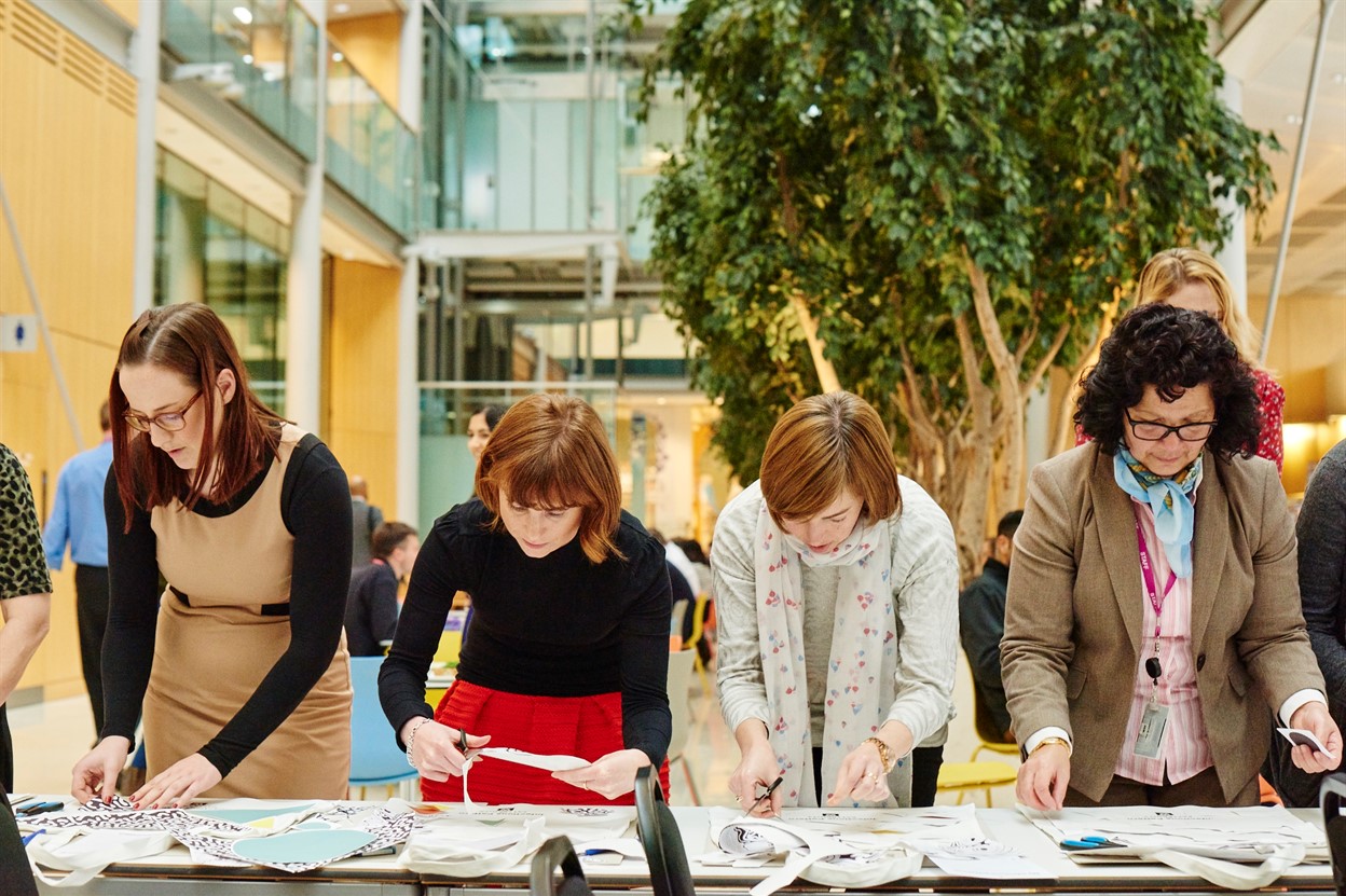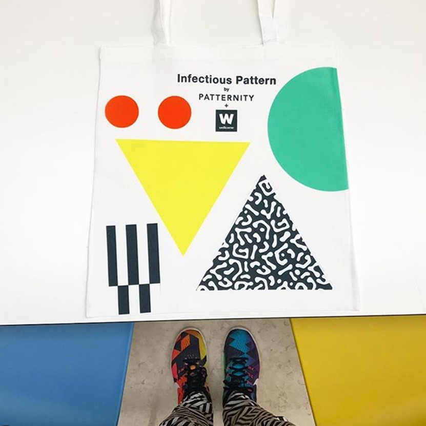 Thank you to everyone who joined us last week for our Infectious Pattern Workshop. We were thrilled to have Mike Turner, Head of Infection and Immunobiology join us again to talk about the work of the Wellcome Trust, and to have an opportunity to share with the public the ideas and inspiration behind our campaign. Everyone created and printed unique Infectious Patterntotes visualising things like "knowledge intercepting chaos" and "a series of petri dishes".