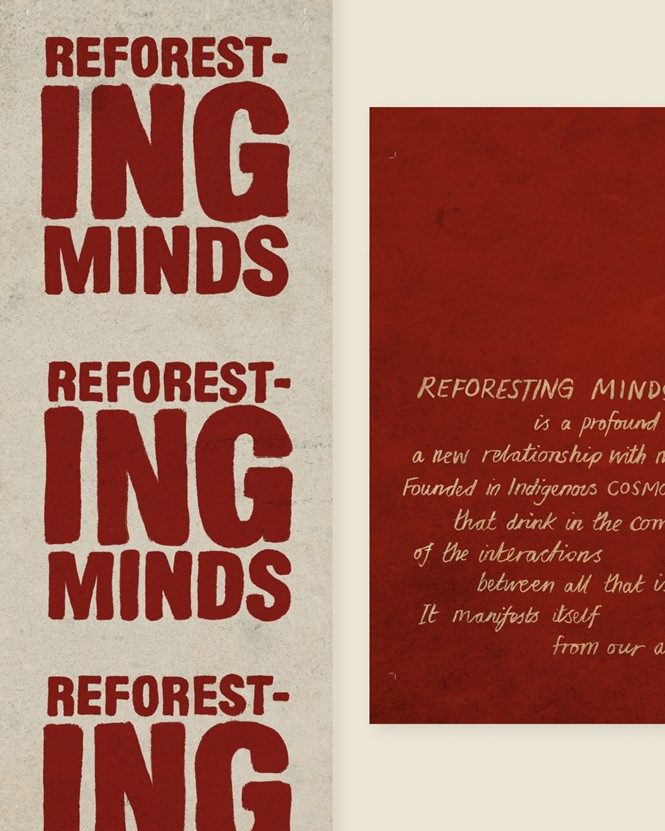 “Smikra Wahikwa” is the creative visualisation of a love letter to Earth written by Indigenous leaders Sônia Guajajara and Célia Xakriabá and co-created by Choose Earth Collective. The words and symbols printed across hanging banners in a “fabric forest” remind us that We Are Earth and act as a passionate call to Western cultures to “reforest our minds” and put nature at the centre of our thinking.