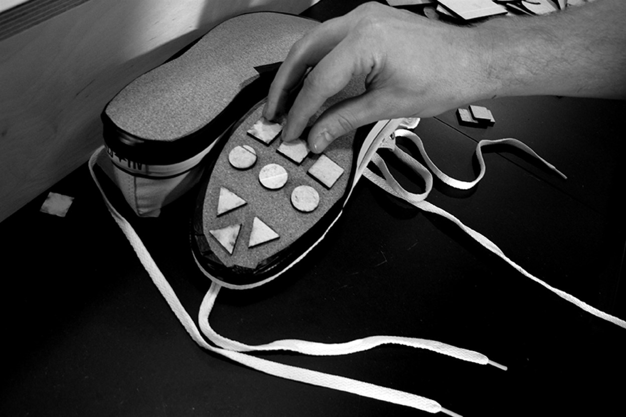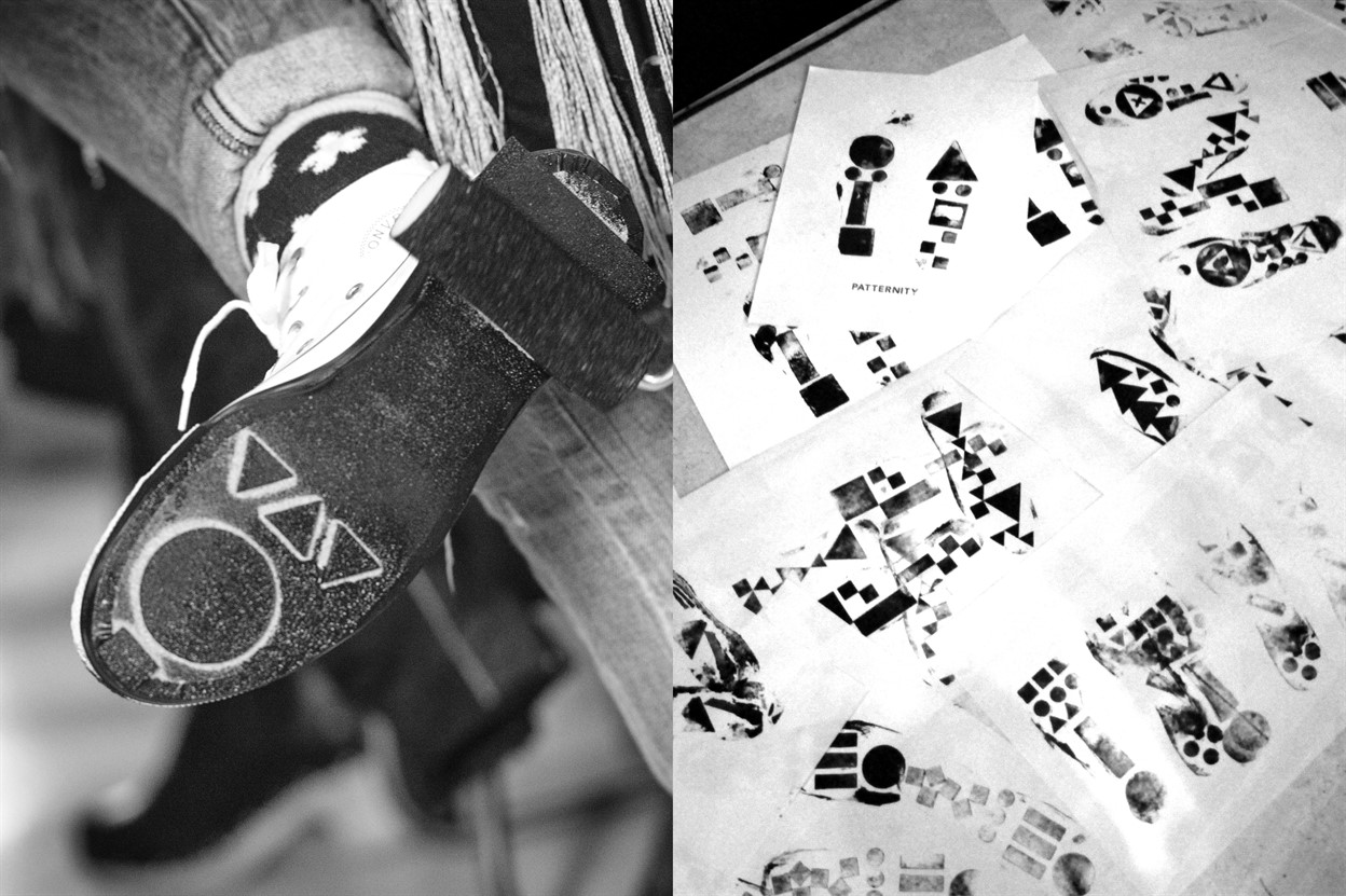 We encouraged groups of participants to customise their Chuck soles using bold rearrangements of simple geometric shapes found everywhere beneath our feet, from gridded paving stones to circular drain covers and striped zebra crossings.