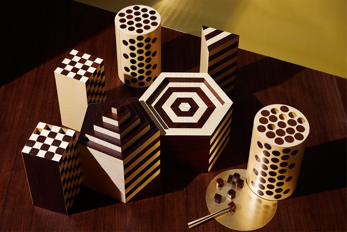 Collaborating with Belgian master chocolatier Pierre Marcolini and marquetry specialist Toby Winteringham, we created the delectably geometric Structure of Chocolate .